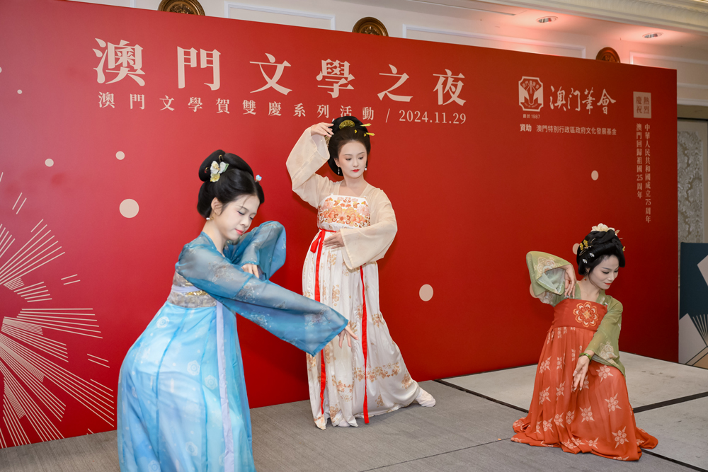 澳門筆會向出席晚會嘉賓致送《文藝之城.澳門之美》澳門文學(xué)賀雙慶系列活動特刊及《紀(jì)念李鵬翥文學(xué)獎獲獎作品集》,并邀請澳門青年國際藝術(shù)文化協(xié)會演出漢服舞蹈《盛世雙姝》、澳門青年女歌手梁嘉寶演唱慶澳門回歸獻(xiàn)禮歌曲《推開未來之門》?;顒荧@文化發(fā)展基金資助。