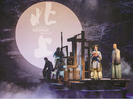 徐則臣創(chuàng)作的《北上》是一部榮獲茅盾文學(xué)獎的長篇小說,它以京杭大運(yùn)河為背景,通過歷史與當(dāng)下兩條線索,以跨越百年的敘事長卷,描繪了幾個家族的“秘史”和他們各自的命運(yùn),表現(xiàn)了近代百年大運(yùn)河的文化圖譜和民族精神的涅槃之變。話劇《北上》改編自這部小說,劇中講述了清朝末年意大利人小波羅和中國翻譯謝平遙等人沿大運(yùn)河一路北上,經(jīng)杭州、揚(yáng)州、淮安、聊城直達(dá)通州的故事,也講述了與他們相關(guān)的后輩人的故事。一條河跨越古今,一群人生死契闊,幾個家族聚散離合,其南北互聯(lián)、中西碰撞的故事,像河水翻波涌瀾,像大樹開枝散葉,像史詩綿延遞進(jìn)。