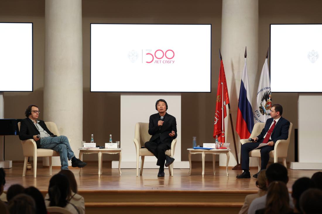 在俄羅斯訪問期間,劉震云來到具有300多年歷史的圣彼得堡國(guó)立大學(xué),接受了由校長(zhǎng)克羅帕切夫授予的圣彼得堡國(guó)立大學(xué)名譽(yù)博士學(xué)位,并參加了由圣彼得堡大學(xué)和俄羅斯中國(guó)文學(xué)讀者俱樂部共同舉辦的“俄羅斯與中國(guó):文學(xué)創(chuàng)造中未來的形象”文學(xué)研討會(huì)。研討會(huì)由羅季奧諾夫主持,由劉震云和俄羅斯作家阿斯特瓦察圖羅夫?qū)φ?,吸引了圣彼得堡中?guó)文學(xué)讀者300余人參加。