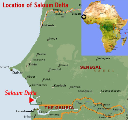 塞內(nèi)加爾位于非洲的西部,薩盧姆三角洲(Saloum Delta)是塞內(nèi)加爾的薩盧姆河入??谔帲ū贝笪餮螅┑囊淮笕侵?。在地圖上,我們還可以看到另一個重要地點——首都達喀爾(Dakar)位于塞內(nèi)加爾中西部沿海一個伸出去的半島上。