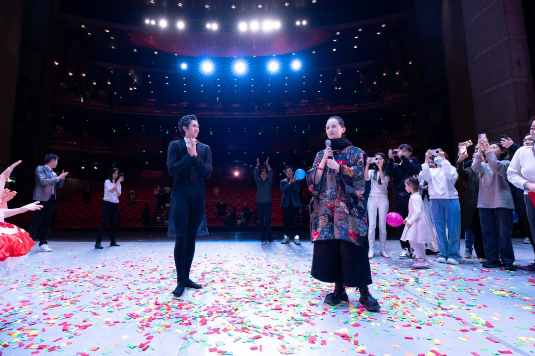 中央芭蕾舞團(tuán)團(tuán)長(zhǎng)馮英(右)宣布黎文韜晉升為首席主演