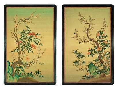 清乾隆紫檀邊緙絲花卉圖對屏 南京博物院供圖