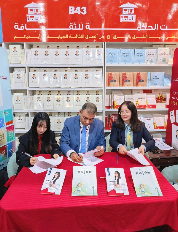 2025年1月25日,在埃及開羅第56屆國際書展期間,兒童文學(xué)作家、重慶文學(xué)院專業(yè)作家李姍姍系列作品阿拉伯語版簽約活動、《面包男孩》阿拉伯語版本簽售會與“埃及和中國 古往今來的關(guān)系”對談活動舉辦?;顒佑砂<跋?诉~特文化產(chǎn)業(yè)集團(tuán)總裁艾哈邁德·賽義德主持。