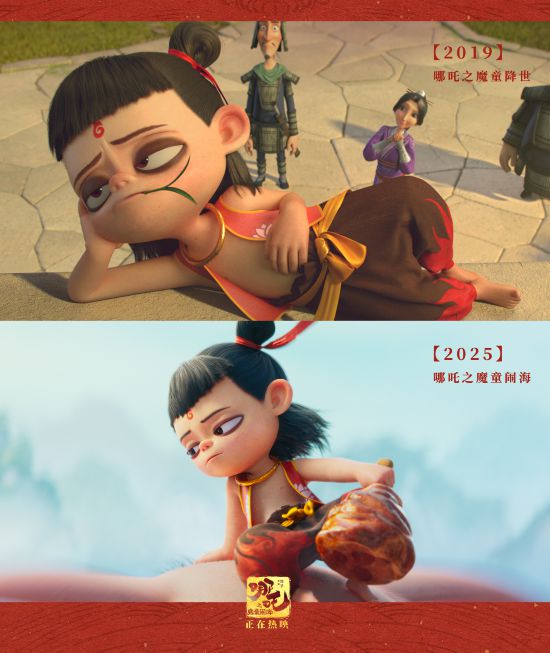 對(duì)哪吒形象的顛覆性重塑,同樣是“哪吒系列”的出色改編成果。哪吒的頑劣,不再是基于宿命原初的設(shè)定,而是源于成長(zhǎng)過(guò)程中父母陪伴的缺失與社會(huì)認(rèn)同的匱乏。影片以人性化的處理方式,通過(guò)大量細(xì)節(jié)展現(xiàn)哪吒叛逆外表下對(duì)于親情和友情的渴望,使他從耳熟能詳?shù)纳裨捰⑿?,轉(zhuǎn)變成一個(gè)“問(wèn)題少年”,引發(fā)觀眾對(duì)哪吒的情感共鳴。