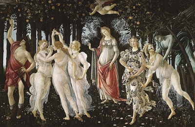 愛(ài)與美、靜與動(dòng)、瞬間與永恒、藝術(shù)與哲學(xué)、運(yùn)動(dòng)的節(jié)奏與構(gòu)圖的和諧、古典傳統(tǒng)的奧秘玄思與文藝復(fù)興的人文主義都在《春》的畫(huà)板上彼此對(duì)照、交相輝映。這是波提切利留給世人關(guān)于春天及真善美的無(wú)限遐想與闡釋迷宮。誠(chéng)如英國(guó)藝術(shù)史學(xué)家貢布里希所言:“關(guān)于這幅迷人畫(huà)作的案卷永遠(yuǎn)都不可能合上?!?/p>