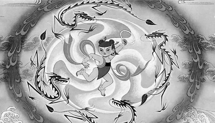 《哪吒鬧?!访佬g(shù)片的總設(shè)計(jì)是原中央工藝美術(shù)學(xué)院院長張仃先生。張先生不僅設(shè)計(jì)出一部經(jīng)典的美術(shù)電影,而且為首都機(jī)場設(shè)計(jì)了一幅巨大的“哪吒鬧?!北诋?。時(shí)至今日,這幅寬15米、高3.4米的作品,依然是首都機(jī)場裝飾畫中的扛鼎之作。