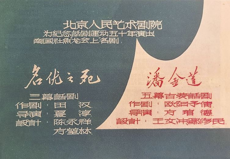 一九五七年,歐陽予倩編劇的《潘金蓮》與田漢編劇的《名優(yōu)之死》同在北京人民藝術劇院演出