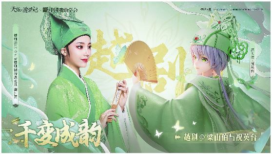 更有妙趣的設(shè)計(jì)是,《戲游九州》邀請(qǐng)了因現(xiàn)象級(jí)越劇《新龍門客?!贰俺鋈Α钡那嗄晟醒輪T陳麗君扮演梁山伯,洛天依則活學(xué)活用地飾演祝英臺(tái),與陳麗君共同呈現(xiàn)梁祝“草橋結(jié)拜”的經(jīng)典場(chǎng)景。這為觀眾帶來了奇趣與驚喜,傳統(tǒng)戲曲的戲迷與“二次元”的粉絲在不斷涌現(xiàn)的彈幕中達(dá)到共鳴。干貨滿滿的游學(xué)記非但毫不枯燥,反而令人意猶未盡。
