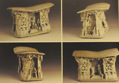 (元)青白釉《白蛇傳》戲劇景物枕,豐城市博物館藏