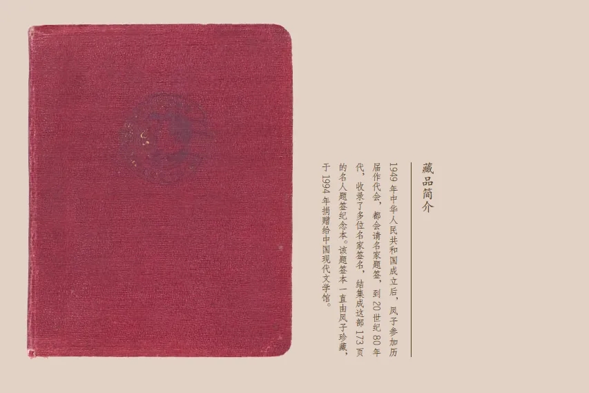 在現(xiàn)代文學(xué)館40年館慶之際,這本鳳子的簽名紀(jì)念冊(cè),以其獨(dú)特的歷史價(jià)值,讓我們真切地感受到人民性文藝思想的力量,領(lǐng)略到眾多文藝前輩的風(fēng)采。希望大家能從這本紀(jì)念冊(cè)的故事中,汲取文藝傳承與發(fā)展的力量,也期待更多朋友走進(jìn)現(xiàn)代文學(xué)館,去發(fā)現(xiàn)那些藏在文物背后的動(dòng)人故事。