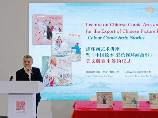 簽約儀式當(dāng)天,由人民美術(shù)出版社主辦的“獨(dú)具中國特色的藝術(shù)之花”連環(huán)畫藝術(shù)講座也在倫敦書展舉辦。