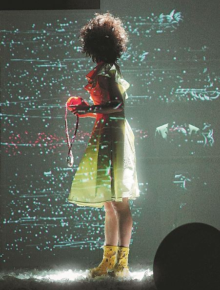 在《1033》的舞臺上,雖然影像營造的夢境是豐富且光怪陸離的,但整個劇目只有兩位演員飾演的兩個角色:女主人和她的狗狗。兩位演員非常投入,無論是肢體語言溝通還是對白互動,表情生動、動作絲滑、配合默契,將一位“追求夢想”的女主人和一只“善解人意”陪伴左右的寵物狗塑造得鮮活而有個性。這兩個角色在劇情推進中相互獨立又相互輔助,不分主次,構(gòu)成了獨特的二元敘事模式。