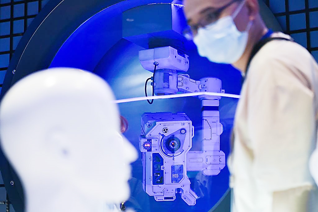 2024年5月30日,科幻電影《流浪地球》中的智能量子計算機MOSS在科幻產(chǎn)業(yè)新技術(shù)新產(chǎn)品展中展出。
