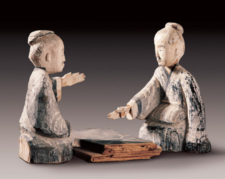 此次展覽延續(xù)“墨韻文脈”系列展覽主旨,通過“繪塑同光”(展出至6月3日)、“書刻同輝”(展出至8月17日)2個(gè)部分展示了來自敦煌研究院、甘肅省博物館、甘肅簡牘博物館及中國美術(shù)館的藏品240余件(套),涉及彩陶、簡牘、帛書、畫像磚、花磚、陶俑、木俑、寫經(jīng)、彩塑、臨摹壁畫等多個(gè)類別。