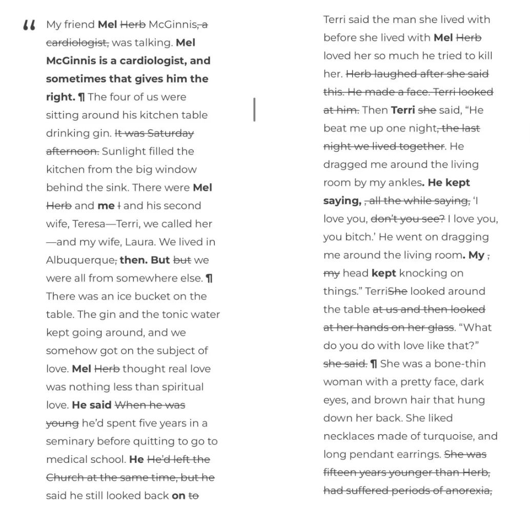 你知道,卡佛不是唯一一個(gè)被我這樣對(duì)待的。我可能在他寫(xiě)的東西上投入了更多精力,是的,投入程度從一個(gè)短篇在一天當(dāng)中改四五遍可見(jiàn)一斑。我在周末也這樣工作。不僅僅是對(duì)雷的作品這樣改。我也靠給書(shū)“治病”謀生,因?yàn)椤稌r(shí)尚先生》的薪水遠(yuǎn)遠(yuǎn)不夠用。我會(huì)從麥格勞-希爾或哈考特·布雷斯出版社接活——接這類活的好處之一是他們通常會(huì)為某一本書(shū)預(yù)付一筆金額可觀的錢,這種書(shū)如果不經(jīng)過(guò)大量修改,他們就沒(méi)法出版。但結(jié)果并不總是令人滿意的。最后總是有一種不好的感覺(jué),瘋狂的感覺(jué),尤其是做那種代筆的工作時(shí)。我不記得這種工作我究竟干了多少,但結(jié)局不算壞。