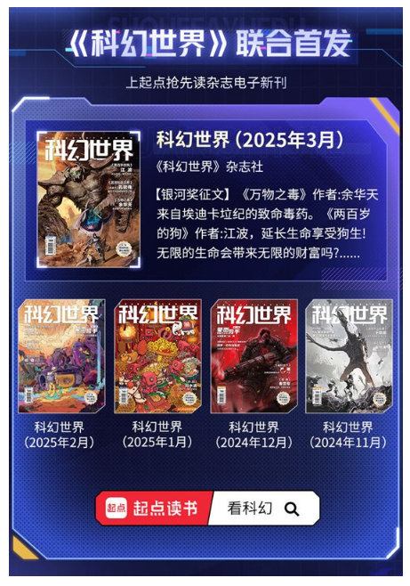 閱文與《科幻世界》官宣合作:電子版將首發(fā)起點(diǎn)讀書