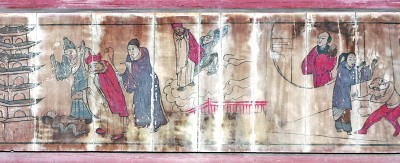 溫州蒼南縣碗窯村上窯三官?gòu)R戲臺(tái)上的“水漫金山”主題彩繪