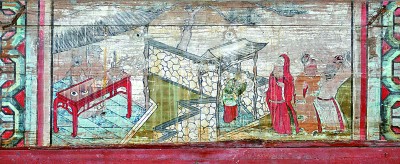 溫州永嘉縣北溪村楊氏宗祠戲臺(tái)上的“三顧茅廬”主題彩繪