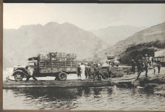 《四庫全書》遷徙到重慶青木關時,竹排載文物卡車過河