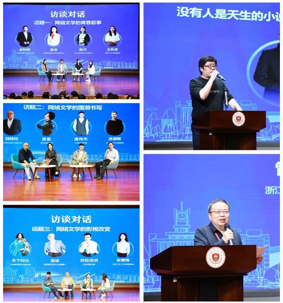 5月8日下午,由校團(tuán)委、文學(xué)院聯(lián)合承辦的“網(wǎng)絡(luò)作家進(jìn)校園”活動在馬可音樂廳舉行。跳舞、管平潮、卓牧閑、麥蘇等知名網(wǎng)絡(luò)作家齊聚一堂,圍繞“網(wǎng)絡(luò)作家是如何煉成的”等話題為我校師生帶來一場文學(xué)與思想的盛宴。校黨委常委、宣傳部部長孟召學(xué)致辭。江蘇省作家協(xié)會副主席、江蘇省網(wǎng)絡(luò)作家協(xié)會主席跳舞與浙江省作家協(xié)會副主席、浙江省網(wǎng)絡(luò)作家協(xié)會副主席管平潮就“沒有人是天生的小說家”作專題演講。訪談環(huán)節(jié),現(xiàn)場觀眾踴躍提問,卓牧閑、驍騎校、天下歸元、賴爾等網(wǎng)絡(luò)作家分別就“網(wǎng)絡(luò)文學(xué)的青春敘事”“網(wǎng)絡(luò)文學(xué)的國潮書寫”“網(wǎng)絡(luò)文學(xué)的影視改編”等話題與我校師生展開交流對談,網(wǎng)絡(luò)作家代表向觀眾贈送了簽名書籍?;顒又羞€舉辦了第三期江蘇新銳網(wǎng)絡(luò)作家作品研討會、徐州市網(wǎng)絡(luò)文學(xué)創(chuàng)作委員會成立大會、“學(xué)習(xí)貫徹習(xí)近平文化思想,促進(jìn)文化新業(yè)態(tài)發(fā)展”座談會,網(wǎng)絡(luò)作家驍騎校舉行了新作《下一站,彭城廣場》簽售會。