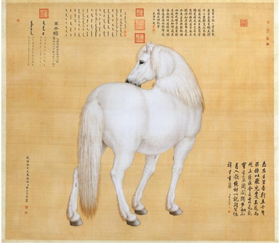 宮廷畫(huà)師畫(huà)走獸具備得天獨(dú)厚的條件。朝貢的名貴物種,如駿馬、獵犬、猛禽、異獸等,成為宮廷動(dòng)物畫(huà)的重要組成部分,三位西洋畫(huà)師郎世寧、艾啟蒙、王致誠(chéng)分別創(chuàng)作過(guò)“十駿馬”。