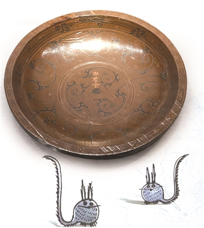 “君幸食”貍貓紋漆食盤(pán)與其中的貍貓紋樣。