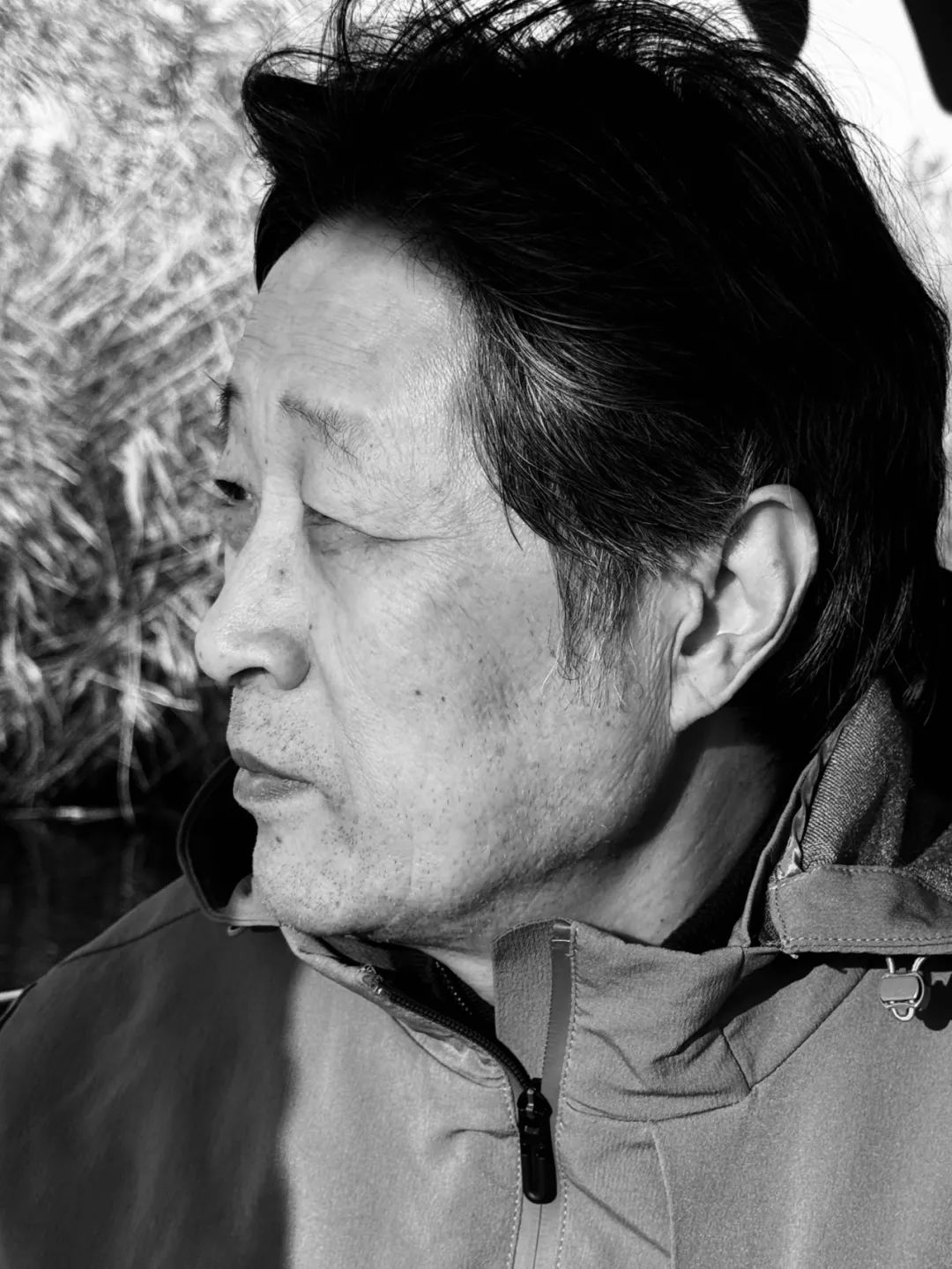 他的白胡子在風中飄拂,像自制的瀑布,