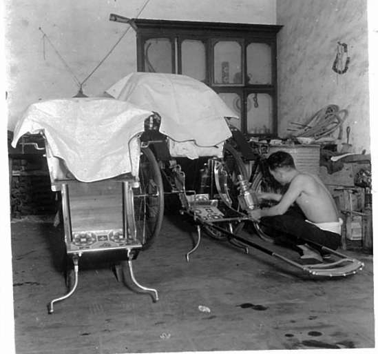早期的洋車,看上去就像把一把座椅安在一根車軸和兩個大輪子上。最早的洋車轱轆也只是木車輪外面包裹了一層鐵皮,舒適性和便捷性都很差。后來,人們對洋車做了不少改良。比如安裝避震彈簧、用橡膠輪胎做洋車轱轆。解決了顛簸問題,洋車才逐漸被乘客們接受。