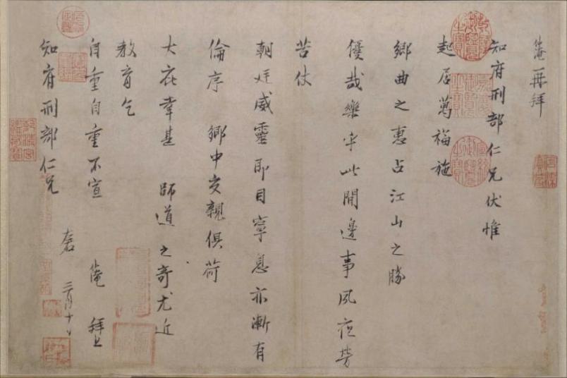 首先,根據(jù)“邊事”可知范仲淹正在西北御邊,結(jié)合他的工作履歷可將這封信的時(shí)間鎖定在康定元年(1040)至慶歷三年(1043)之間,再根據(jù)“即目寧息,亦漸有倫序”可知大概率是在慶歷三年(1043),因?yàn)榍皟扇晁诬娊舆B大敗,一直處于緊張防守的狀態(tài),直到最后一年時(shí)才具備“即目寧息,亦漸有倫序”的條件。信中落款時(shí)間是三月十日,所以可推知這封信大概率寫(xiě)于慶歷三年三月十日。