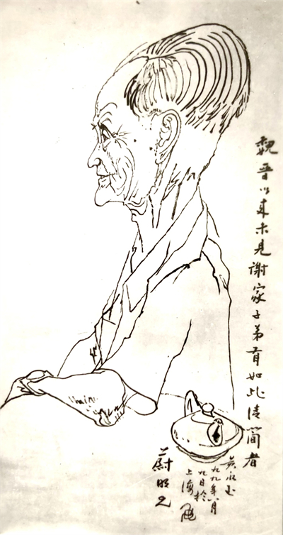 謝蔚明先生是《文匯報(bào)》的老人,晚年常來報(bào)社,有時(shí)在大堂邂逅,他襯衫口袋里會(huì)放一封黃永玉的來信,碰到就拿給我看。他們是超過半個(gè)世紀(jì)的老朋友。謝蔚明曾在文章里引過黃永玉一封信的話,讓人印象深刻:“過去,好些年才死一個(gè)老頭子,后輩人從從容容寄托哀思,寫了許多有意思的文章,沉重沉重好長(zhǎng)一段時(shí)間?,F(xiàn)在一串一串地來,好像激情愛國(guó)者踴躍搶購(gòu)公債券,前赴后繼不堪之至,讓人靜默三分鐘都來不及,像我,就欠了許多分量很重的情……”(謝蔚明《雜七雜八集》,武漢出版社,2000年3月版,56頁(yè))有一回,口袋里放的是黃永玉給他畫的白描像的照片,謝先生印了一些分贈(zèng)朋友,也送我一張。那幅白描像畫得真是絕,一旁的題詞也絕:“魏晉以來未見謝家子弟有如此清簡(jiǎn)者。黃永玉九九年八月八日于上海畫蔚明兄?!卞X默存曾有兩句題畫詩(shī):“畫品居上之上,化人現(xiàn)身外身”,移來稱贊黃永玉的這幅白描人像,再貼切不過。謝蔚明先生后來寫了篇《黃永玉贈(zèng)畫》,說那幅白描像有九十公分高,只用了一刻鐘多一點(diǎn)時(shí)間就完成了(謝蔚明《那些人那些事》,上海遠(yuǎn)東出版社,2006年5月版,13頁(yè))。