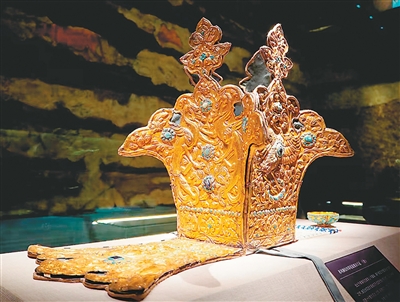 出土于青海省烏蘭縣泉溝一號墓的王冠修復后重現(xiàn)光彩。