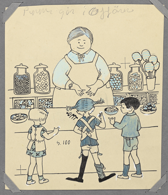 此外,我們不能忘記,一位杰出的插畫(huà)師讓皮皮逼真地走出了紙面。1916年生于丹麥的英格瑞德·尼曼,童年因一場(chǎng)事故使得一只眼睛失明。1935年入哥本哈根皇家藝術(shù)學(xué)院學(xué)習(xí)了一陣。兩年后遇瑞典畫(huà)家和詩(shī)人阿恩·尼曼,二人結(jié)婚生子,婚姻只維持了幾年。她留在斯德哥爾摩畫(huà)畫(huà)。1945年借《長(zhǎng)襪子皮皮》的插畫(huà)成名。