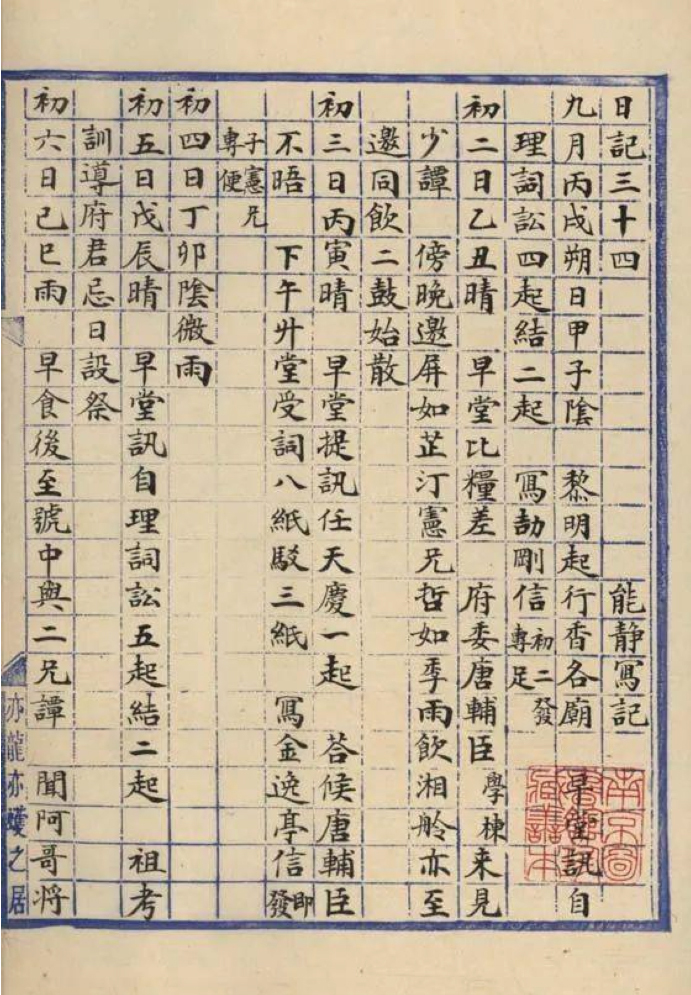 落花春雨巢日記五冊(cè) 清武進(jìn)趙烈文(惠甫)撰 手稿本 惠甫早年時(shí)日記草稿本。每半頁(yè)十行,直行格次紙。自咸豐二年至五年。