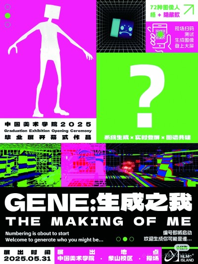 中國美術學院畢業(yè)展開幕式作品《GENE:生成之我》海報,它是一套圖像人格生成系統(tǒng),基于AI技術,可以自動生成給不同人量身定制的圖像人格卡片