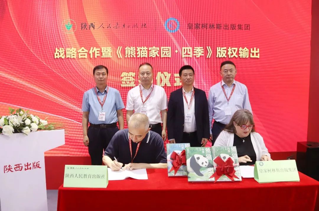 6月18日,陜西人民教育出版社與加拿大皇家柯林斯出版集團戰(zhàn)略合作暨《熊貓家園?四季》版權(quán)輸出簽約儀式在第三十一屆北京國際圖書博覽會上舉行。陜西新華出版?zhèn)髅郊瘓F黨委書記、董事長安平,黨委委員、總編輯周維軍,副總經(jīng)理屈占權(quán),加拿大皇家柯林斯出版集團亞太區(qū)總裁宋波、法語圖書總編輯葛妮出席活動。