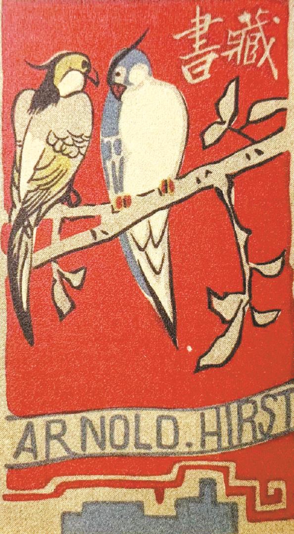 一次偶然的機(jī)會(huì),他在日本《明星》雜志上接觸到藏書(shū)票,從此開(kāi)啟了收藏與研究之路。他關(guān)注西方木刻版畫(huà)家比亞斯萊、麥綏萊勒的作品,還專(zhuān)程向內(nèi)山書(shū)店求購(gòu)齋藤昌三的《藏書(shū)票之話》,并與作者建立通信聯(lián)系。1933年,他不僅向良友圖書(shū)公司推薦麥綏萊勒木刻集,還在《現(xiàn)代》雜志發(fā)表《藏書(shū)票之話》,同期刊登了他親自設(shè)計(jì)的“靈鳳藏書(shū)”票——灰紙上黑紅套印,中央為鳳鳥(niǎo)圖案,四周環(huán)繞漢磚紋樣,“靈鳳藏書(shū)”四字以紅色醒目呈現(xiàn),盡顯東方美學(xué)特色。雜志插頁(yè)還附印了16張15世紀(jì)以來(lái)的各國(guó)藏書(shū)票,這是藏書(shū)票知識(shí)首次系統(tǒng)傳入中國(guó)。