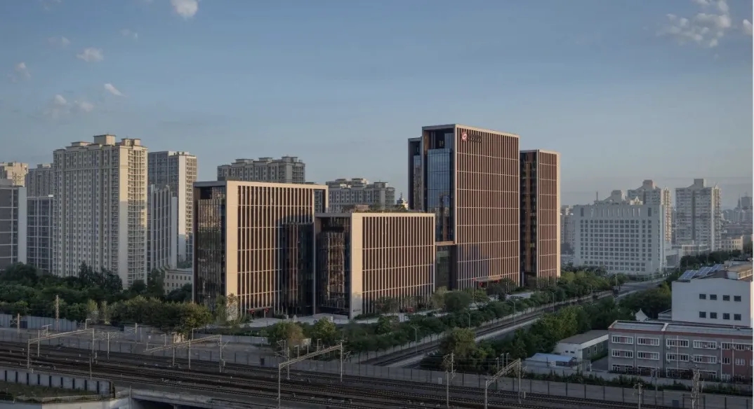 中國(guó)國(guó)際出版交流中心,立面取意“金書(shū)玉匣”,左起第二棟建筑即為人文社新大樓