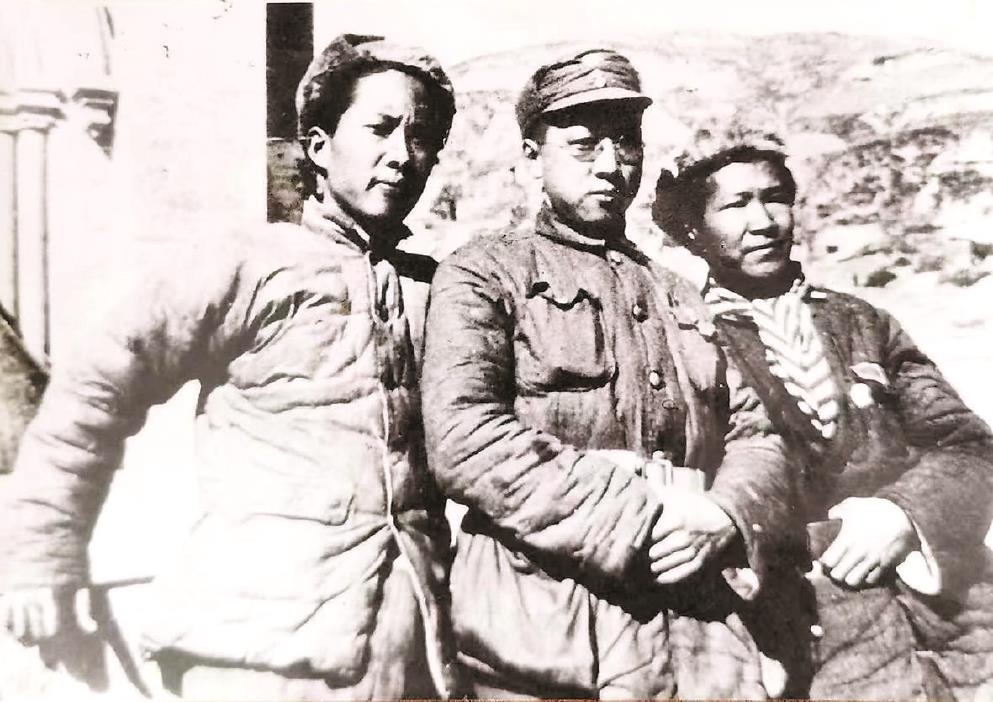 1930年代末,華君武和音樂家盛家倫、冼星海(自左至右)在延安橋兒溝魯迅藝術(shù)文學(xué)院合影。 沈逸千 攝