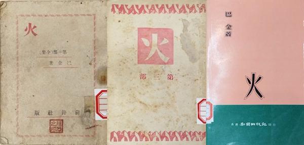 巴金《火》的多個版本,中國現(xiàn)代文學(xué)館巴金藏書文庫藏。作者供圖