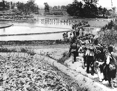 新四軍挺進(jìn)華中敵后,廣泛發(fā)動(dòng)群眾,開(kāi)展抗日游擊戰(zhàn)爭(zhēng),創(chuàng)建抗日根據(jù)地,開(kāi)辟了廣闊的華中敵后戰(zhàn)場(chǎng)。圖為新四軍挺進(jìn)敵后。