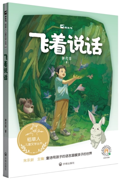在當(dāng)代兒童文學(xué)版圖上,鐘代華是一個(gè)“與童年簽約終身”的名字。他自1983年以詩(shī)歌叩響兒童文學(xué)的大門(mén)開(kāi)始,四十余年筆耕不輟,獲得宋慶齡兒童文學(xué)獎(jiǎng)、陳伯吹兒童文學(xué)獎(jiǎng)等殊榮。2024年春,他的第11部?jī)和?shī)集《飛著說(shuō)話》翩然而至,與葉圣陶的《稻草人》、冰心的《小桔燈》等經(jīng)典共同列入“稻草人兒童文學(xué)叢書(shū)”,成為獻(xiàn)給數(shù)字時(shí)代兒童的一座詩(shī)意家園。這部童詩(shī)集分門(mén)別類地描繪動(dòng)物、自然、植物與日常生活的奇妙瞬間。其語(yǔ)言清新優(yōu)美,插圖鮮活靈動(dòng),飽含童趣與哲思,為大人和孩子共同開(kāi)啟探索童真世界的審美之旅。