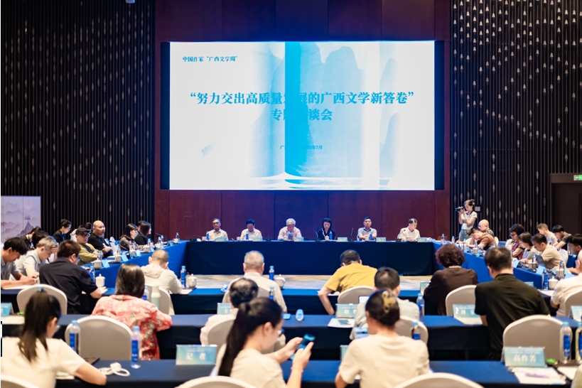 在“努力交出高質(zhì)量發(fā)展的廣西文學(xué)新答卷”專(zhuān)題座談會(huì)上,受邀作家與廣西本地作家代表齊聚一堂,共同探討新大眾文藝視野下廣西文學(xué)發(fā)展的未來(lái)。座談會(huì)由廣西作協(xié)黨組書(shū)記、副主席程小華主持。