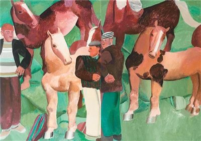 在此以外,來自新疆的藝術(shù)家趙培智,在描繪生養(yǎng)自己土地上的人們時(shí),展現(xiàn)出了更自由舒展的意象。他注重捕捉人們?nèi)粘I畹乃查g,通過提煉和歸納物象造型,形成了濃郁的藝術(shù)語言和情感氣息。諸如在畫作《縱情之馬》中,一種介于現(xiàn)實(shí)與夢(mèng)境間的情緒呼之欲出。其繪畫使表現(xiàn)新疆地域的人物形象不再囿于普通意義上的民族學(xué)范疇,而是展開了更具國(guó)際化和現(xiàn)代性視覺張力的新維度。通過趙培智的藝術(shù),可以看到20世紀(jì)以來,從由外及內(nèi)畫新疆,到新疆人自己畫自己的新變。