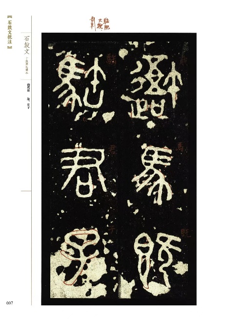 《石鼓文批注》是畫家、中國國家畫院國畫專業(yè)委員會研究員吳悅石先生多年耕耘研究所著。此書以“先鋒本”拓本為底本,進行逐字釋讀與批注,為讀者提供可靠的原始文本參照;運用“雙鉤廓填”技法復(fù)原146處殘損文字,最大程度重現(xiàn)石鼓文原貌;以“頁邊注、字間補、旁注疑”的獨特批注體系,“拓本+臨本+匯總表”的立體呈現(xiàn)體系,為讀者建構(gòu)了縱貫古今的通衢、神接千載的津梁。書中240余處文字的精微釋讀,既還原先秦生活場景,又梳理漢字演變脈絡(luò),堪稱連接古今的“文字橋梁”。為社會各界學(xué)習(xí)臨摹、研究考釋《石鼓文》提供了全新的學(xué)術(shù)視角。