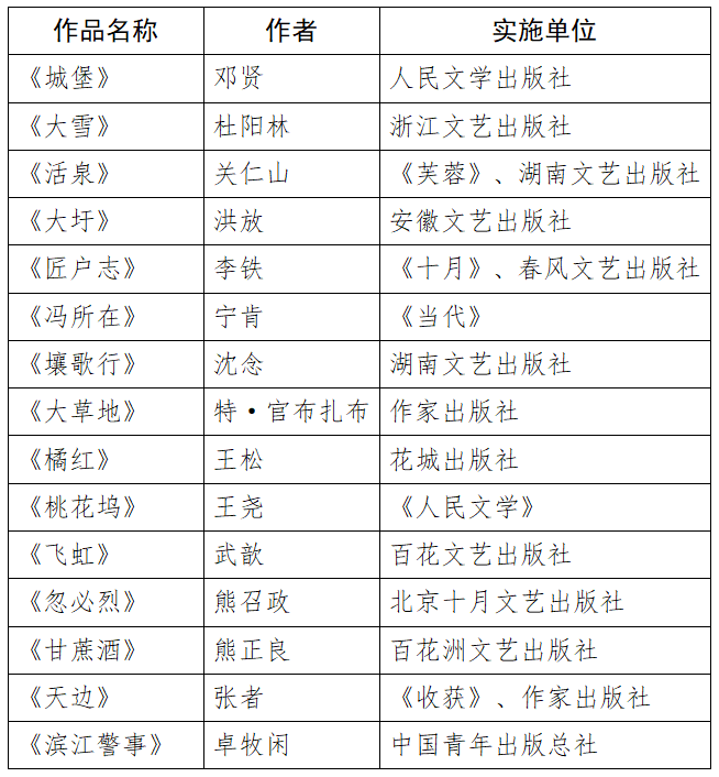 新時代文學(xué)攀登計劃第六期支持項(xiàng)目名單