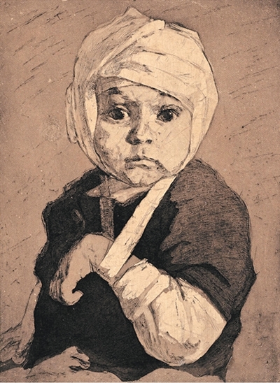 《被法西斯炸傷的孩子》銅版畫。