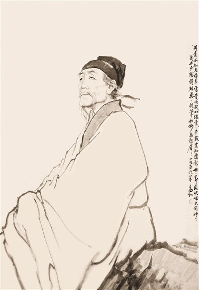 “往還古今”單元選取了蔣兆和大量以歷史人物為題材創(chuàng)作的作品。其中包括眾所周知的《杜甫》及其畫稿、《太白沉思》《李清照像》《悠然見南山》《司馬遷》等代表作。此類人物創(chuàng)作因缺乏明確的形象依據(jù),畫家只能以心為炬,借古人史傳與作品去想象其風(fēng)采,感受其心境,也因此更能體現(xiàn)蔣兆和筆墨意趣的抒發(fā)、情感心緒的表達(dá)。如在《杜甫》這件作品中,我們不僅能夠看到蔣兆和在上世紀(jì)50年代為將白描、骨法用筆等中國(guó)傳統(tǒng)筆墨技法融入人物畫造型而作出的卓絕努力,同時(shí)也能通過人物塑造的精彩處體會(huì)到他“為民寫真”的創(chuàng)作思路與杜甫憂國(guó)憂民的現(xiàn)實(shí)主義精神之間的情感呼應(yīng)。