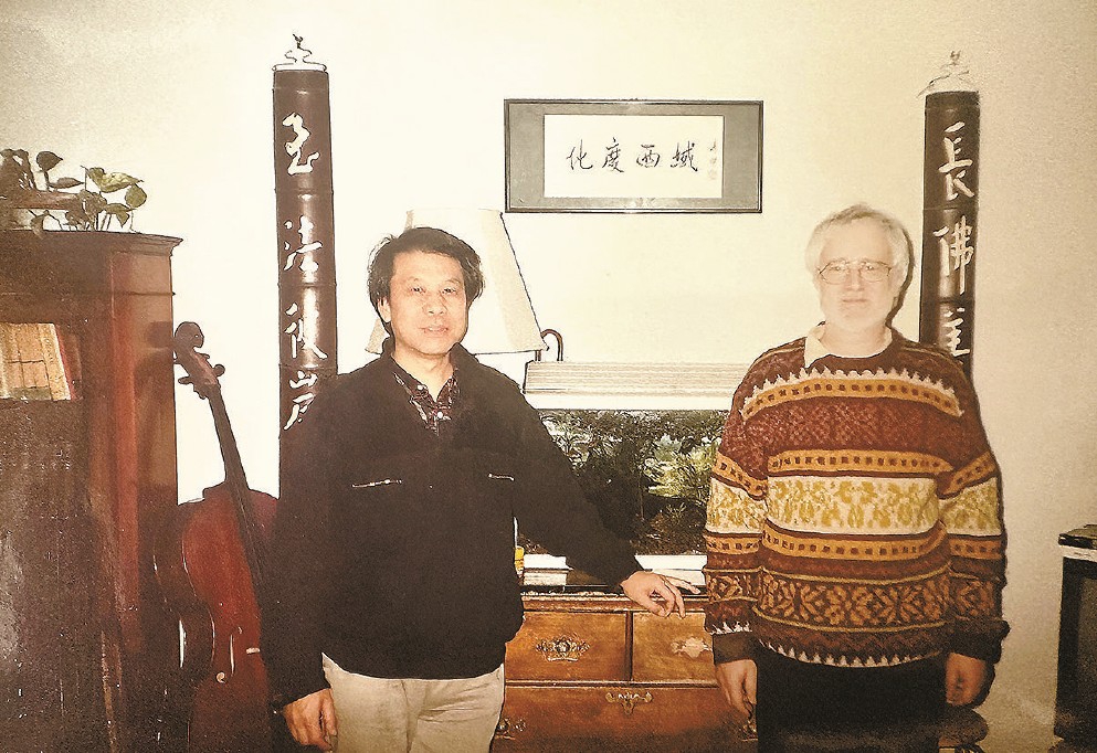 劉心武(左)1992年10月在挪威奧斯陸何莫邪家中與其合影