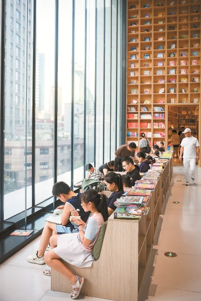 8月17日傍晚,讀者在上海書城內(nèi)選書、讀書。本報記者 海沙爾 攝