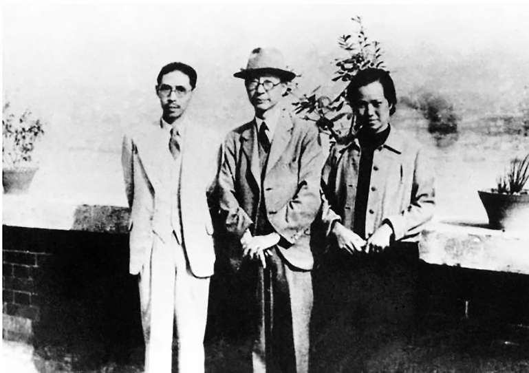 老舍(中)和茅盾(左)、于立群(右)在重慶。